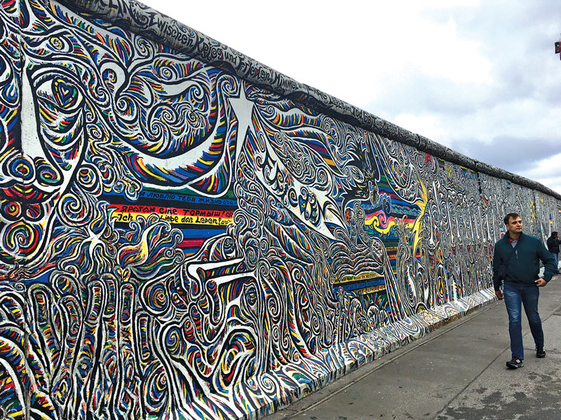 The East Side Gallery is a series of murals painted on a 4,300 ft. section of the Berlin Wall, which divided West and Eastern Germany between 1961 and 1989. The largest open-air gallery in the world, it has become a symbol of German reunification.
