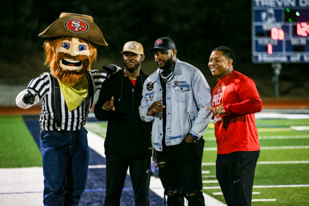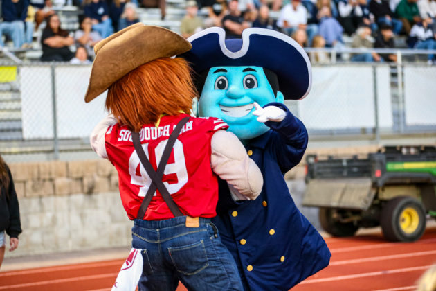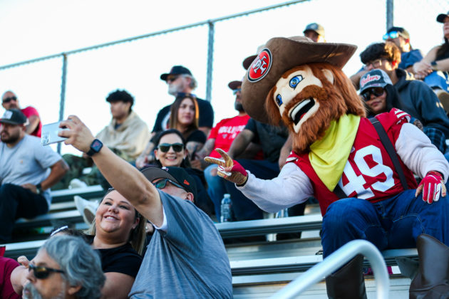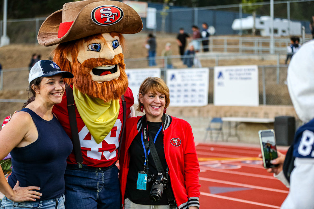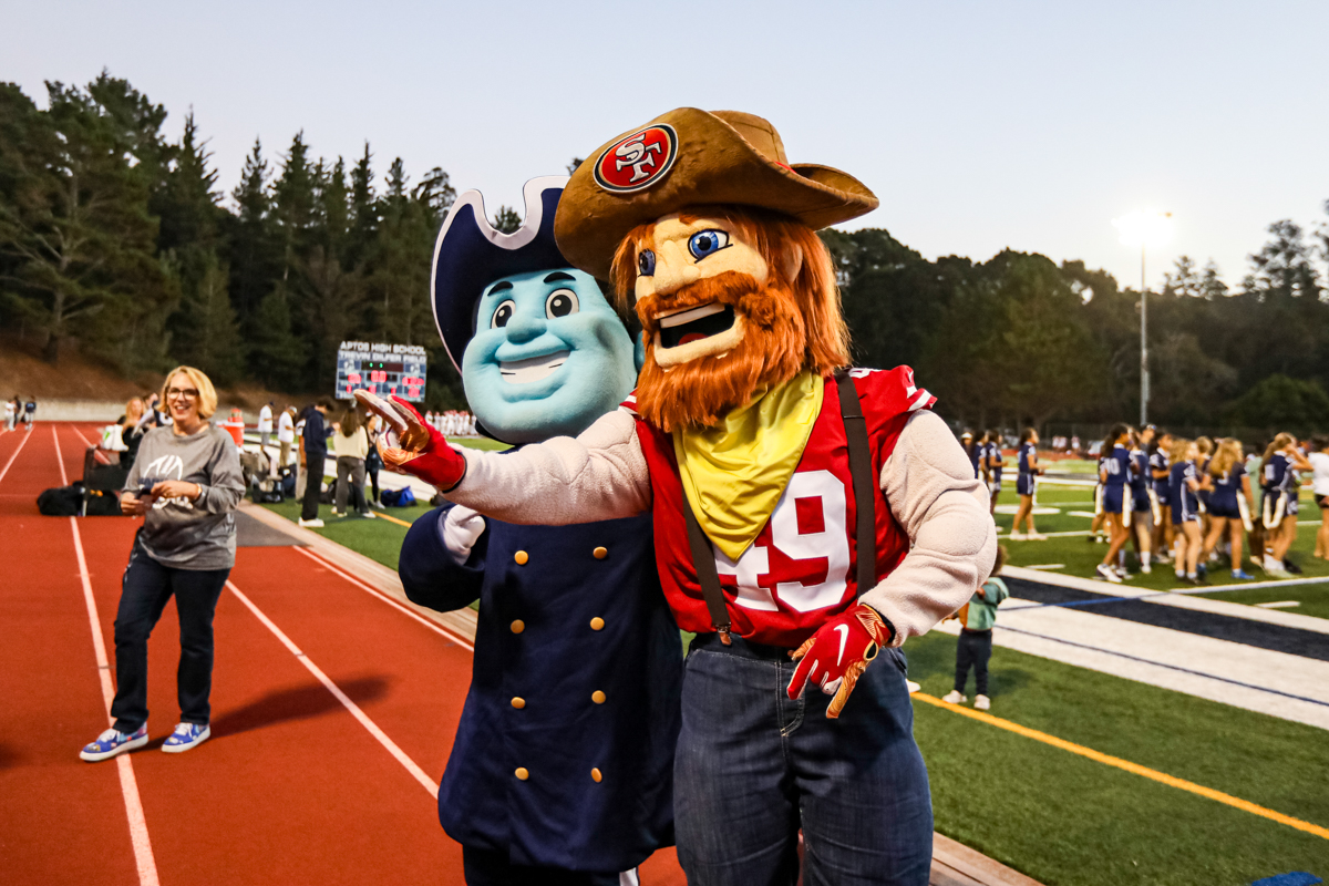 Aptos High hosted the “San Francisco 49ers High School Takeover” with a football doubleheader Sept. 27. With San Francisco 49ers mascot Sourdough Sam roaming the field and a social media team in place to film the action, two great games took place.