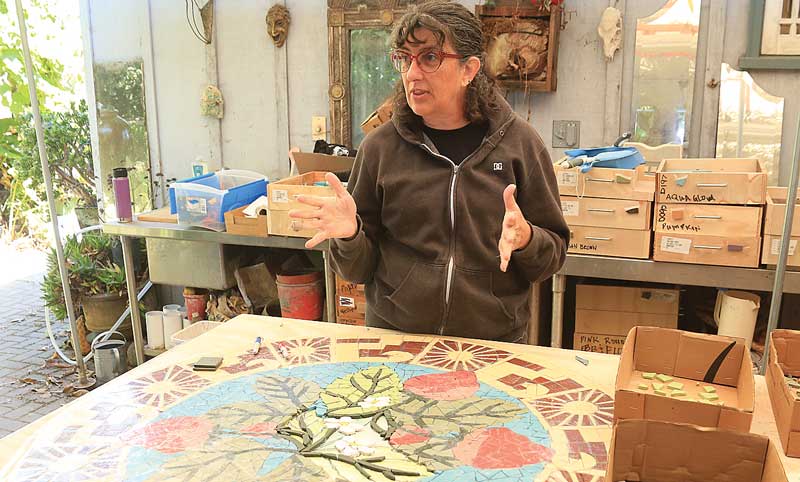 Watsonville artist Kathleen Crocetti, who was chosen by the city to create mosaics for newly-expanded sidewalks in the downtown area, is inviting community members to the farmers market Friday and July 21 on Peck and Union streets from 2-7 p.m. to help with the project.