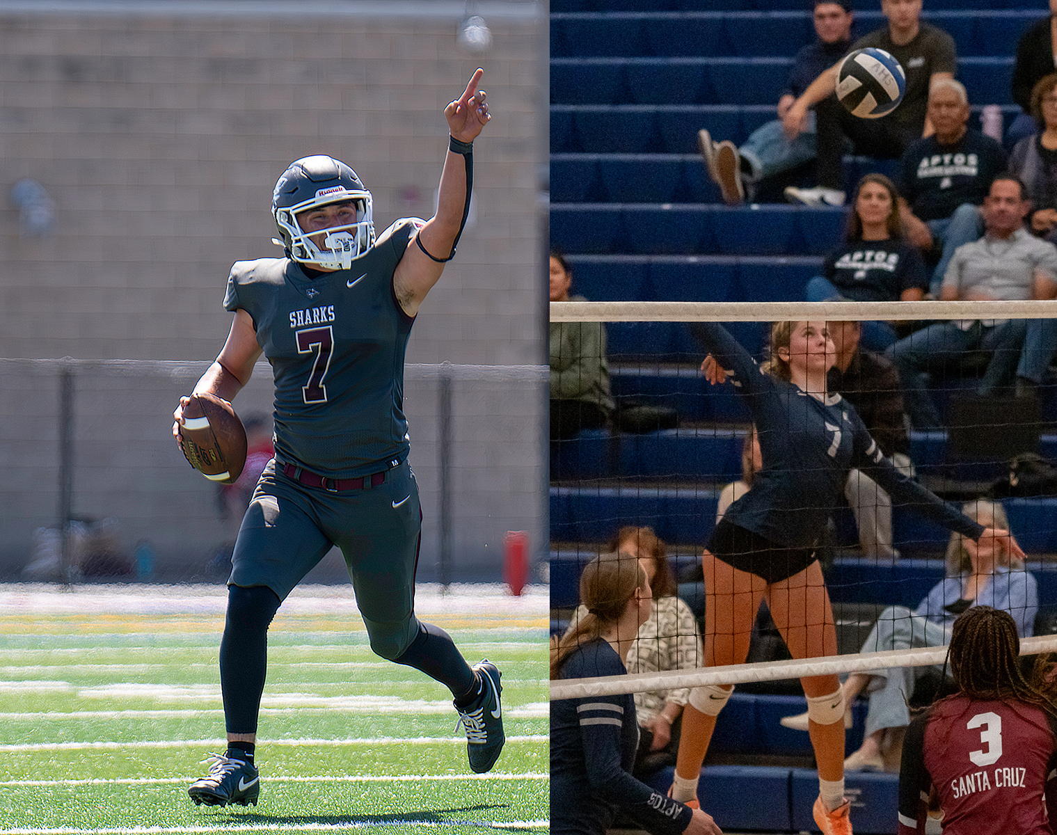 The Sharks’ starting quarterback accounted for three total touchdowns in a 41-8 blowout win against Harbor High in the teams’ non-league game Sept. 19.