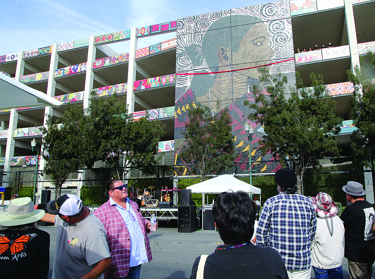 WRAP UP Santa Cruz County Supervisor Felipe Hernandez is part of a large crowd that showed up Saturday to celebrate the completion of the massive Watsonville Brillante mosaic mural project on the parking structure on Rodriguez and West Beach streets. Music, dancing, food trucks, arts and crafts filled the festive five-hour event, which included words from city and county officials, volunteers, donors and lead artist Kathleen Crocetti. The project took five years in 10 six-month phases. (Tarmo Hannula/The Pajaronian)
