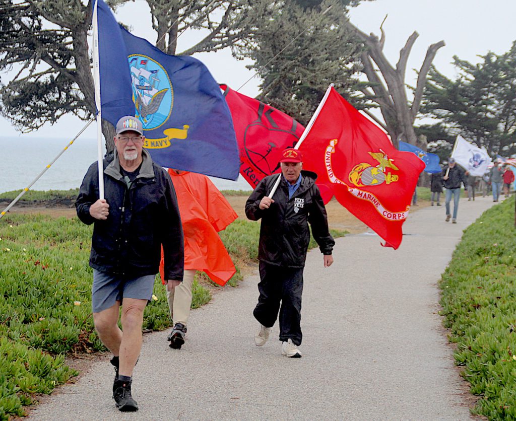 Cold autumn rain did not dissuade a group of roughly two-dozen veterans who gathered Monday morning at Natural Bridges State Park for a 10-mile walk to Britannia Arms restaurant in Capitola.