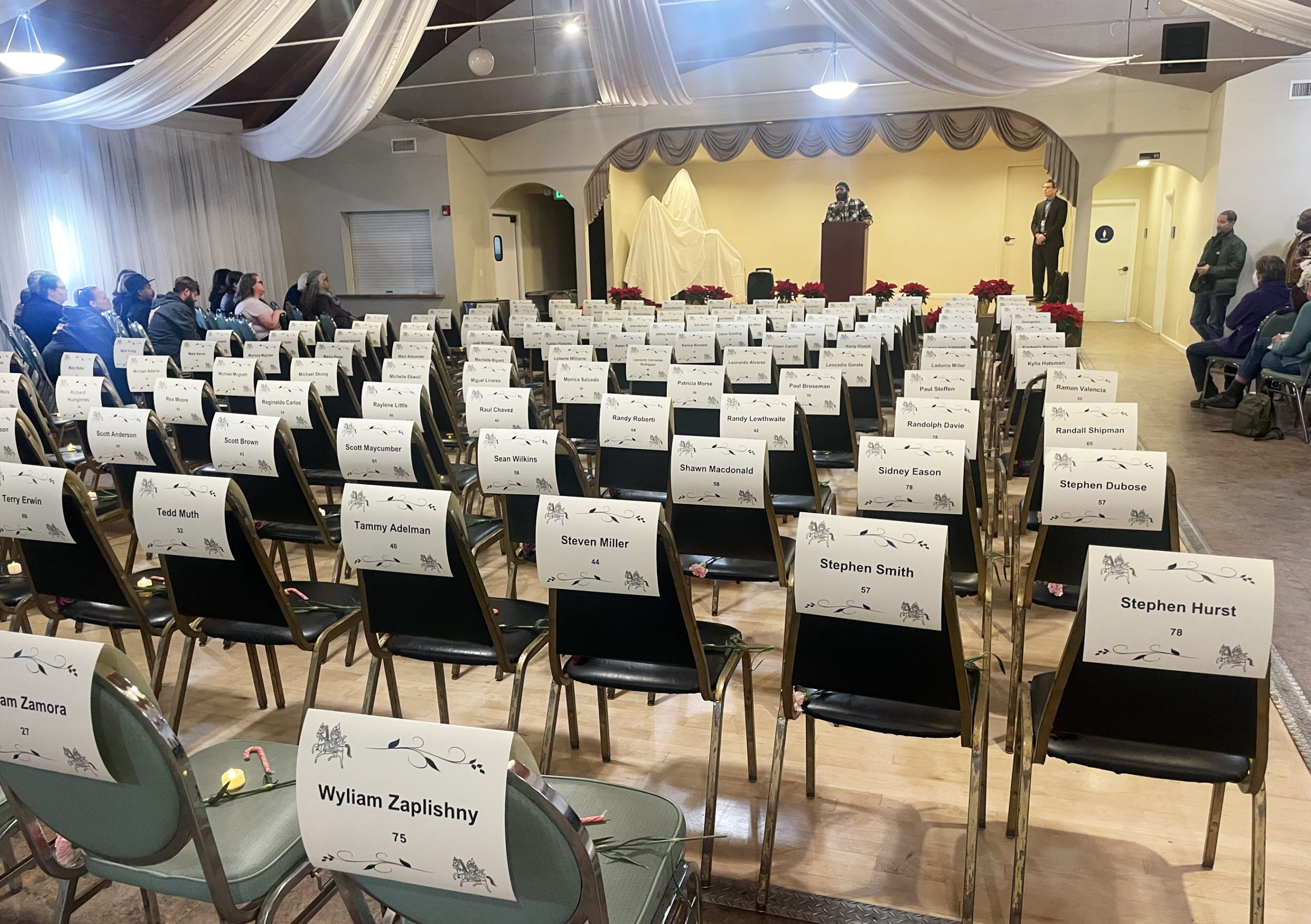Still, the 75 chairs at the center of the cavernous Portuguese Hall in Santa Cruz—each empty except for a small electronic candle, a candy cane and a name placard for each of the homeless people who died while homeless—were a stark reminder that the work is not over.