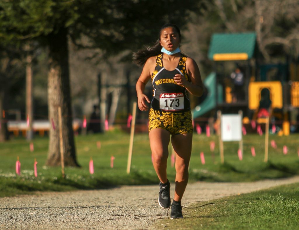 Pajaro Valley freshman Kimberly Aguirre (27:20) placed fifth, followed by freshman Lindsey Martinez (34:09) and sophomore Sara Molina (37:16) who finished sixth and seventh respectively.