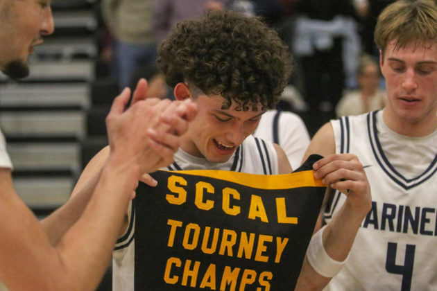 “It’s always a difficult time to beat a team three times, but we had to come in it together,” said Solorio, who showed off the SCCAL Tourney Champions banner to the large crowd of Mariners fans in attendance Saturday evening. “Practicing the whole week we knew it was gonna be a dog fight. We play in dog fights like this all the damn time.”