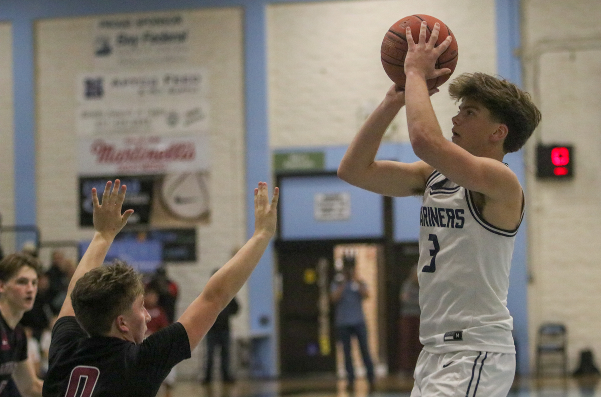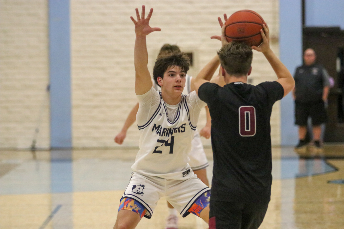 Caden Bogle stopped the bleeding for Aptos in the third stanza after knocking in his lone 3-pointer of the evening. Solorio continued the barrage with a pair of long range shots to start the fourth, and Tovani gave the Mariners their first lead of the game, 39-38, with his bucket from downtown.