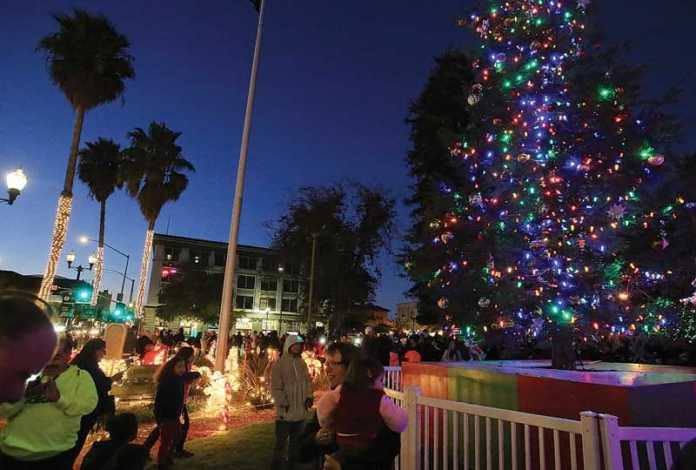 The ceremony featured a welcome from Mayor Oscar Rios, and a performance by a local children’s choir, before the tree and plaza were lit.