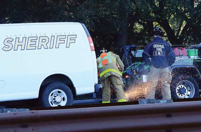 SANTA CRUZ — A man died early Saturday in a brutal fiery crash after his car slammed into the center divide on Highway 1 in the northbound lanes.
