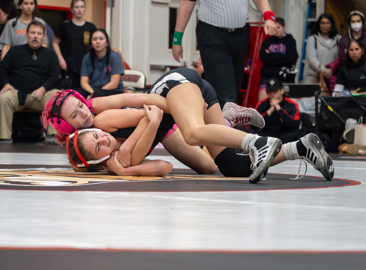 On the girls side, Aptos junior Isabella Cruz pinned Santa Cruz senior Karen Chavez-Vasquez to capture the 100-pound division title.