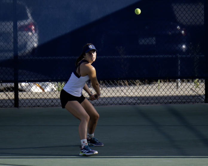 In singles play, Aptos freshman Kiana Safari won her match in straight sets (6-0, 6-1) over Aila Papadopoulous at the No. 1 spot. Fellow teammates senior Aviana Andrews and junior Isabella Calderon both won their matches in a three-set tiebreaker at No. 2 and 4, respectively.