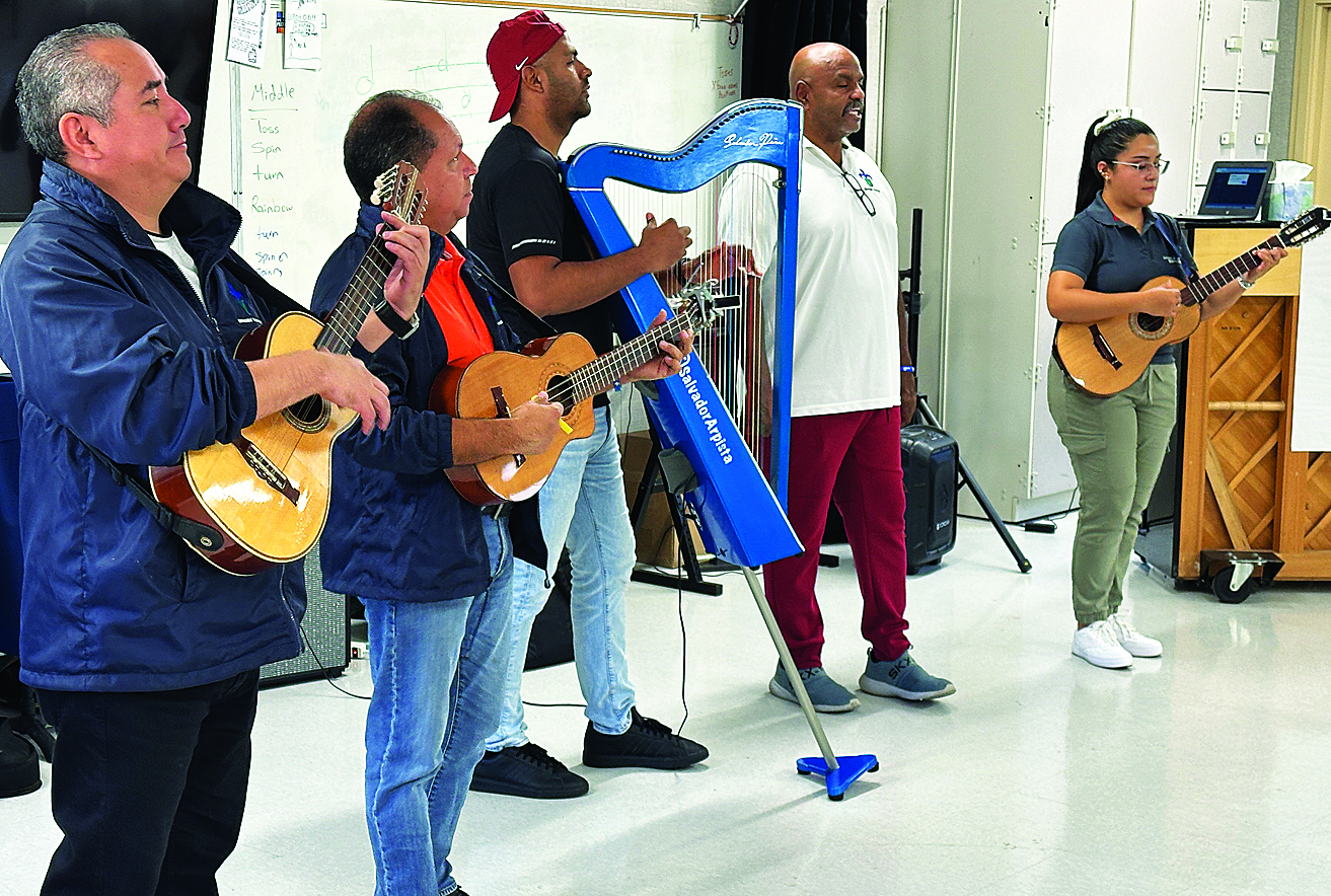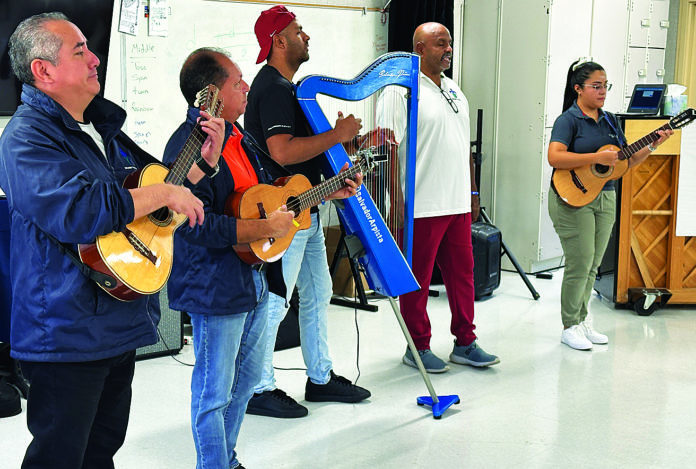 The musical group Nematatlin of Universidad Veracruzana, Mexico, performs Wednesday at Pajaro Valley High School.