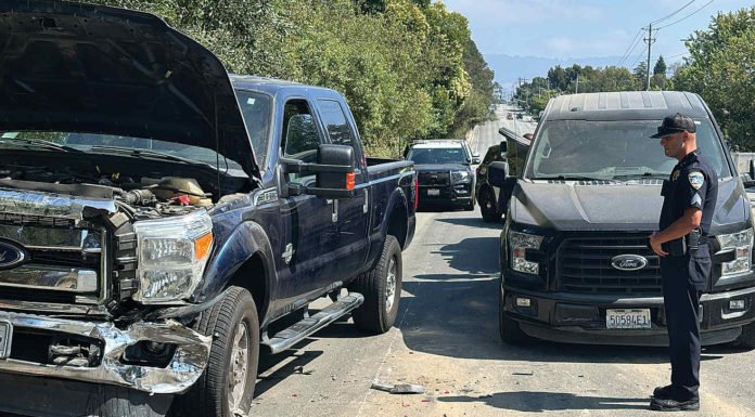 Watsonville Police investigate a four-vehicle crash on South Green Valley Road Tuesday morning. Michelle Pulido, spokeswoman for Watsonville Police, said an unlicensed teen male...