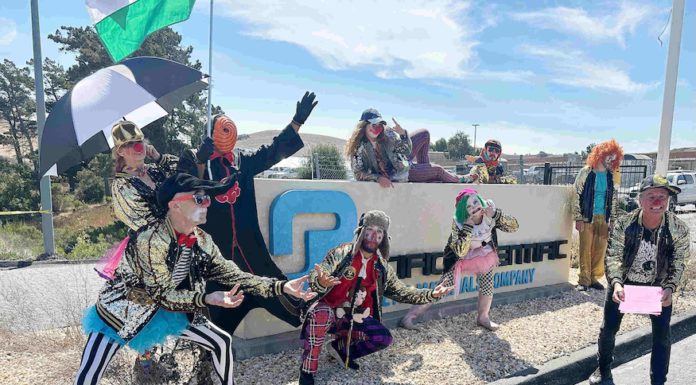 Art & Rebellion, a Santa Cruz-based self-described resistance group staged a peaceful theatrical protest at Pacific Scientific Energetic Materials Company in Hollister Thursday.