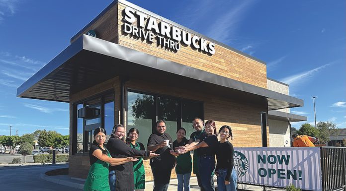 The staff extends an invitation the new Starbucks that opened Thursday morning at 1726 Freedom Blvd. Manager Christine Deschler (second from right) said they...