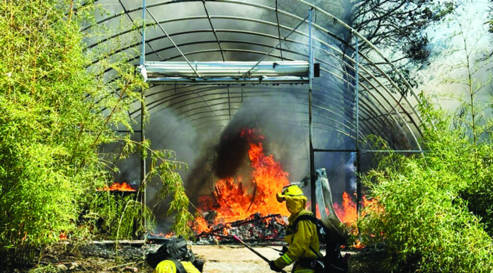 A fire at Bamboo Giant on Freedom Boulevard early Tuesday afternoon damaged a structure, spread into the neighboring field and closed the road in...