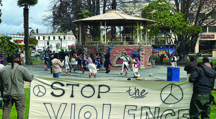 About 75 people marched through downtown Watsonville Sunday carrying messages of peace on handmade posters and banners, a message that also came through in...