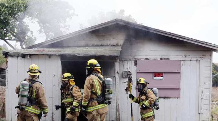 Firefighters from several agencies tackle a fire that broke out in an abandoned building at 29 Rancho Road in Watsonville Monday morning.