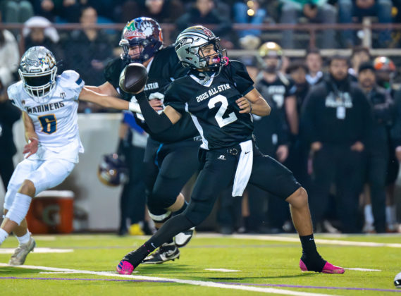 St. Francis senior Javier Fonseca Jr. tossed a pair of touchdown passes for Team Era in their 26-6 victory over Team CASA at the 39th annual Central Coast High School Football All-Star Game at Salinas High School.
