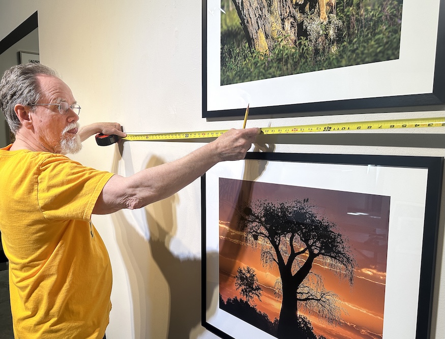 Michael Singer hangs his photos at The Bitzer Gallery on the west side of Santa Cruz as part of a new exhibit, “Through Our Eyes” by a photography group, Image Crafters Santa Cruz. (Tarmo Hannula/The Pajaronian)