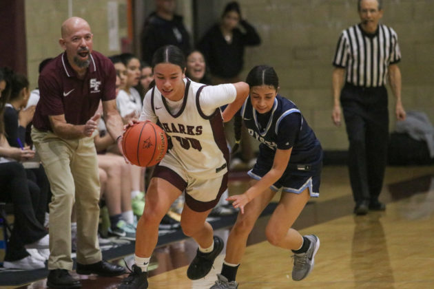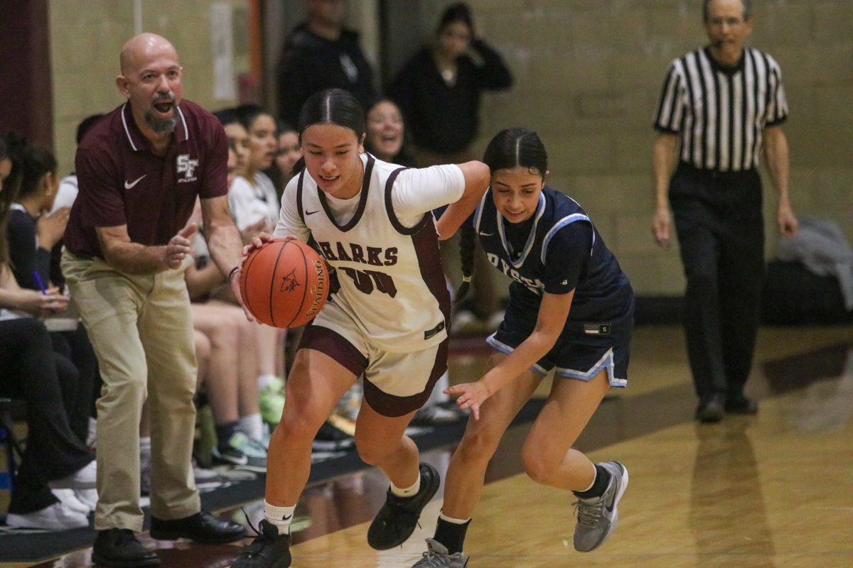 The Sharks went on an 11-0 run to begin the game, and built a 30-16 lead over the defending D-V champion going into halftime. And the pressure from a full court press defense worked wonders for them as they tallied a total of 17 steals.
