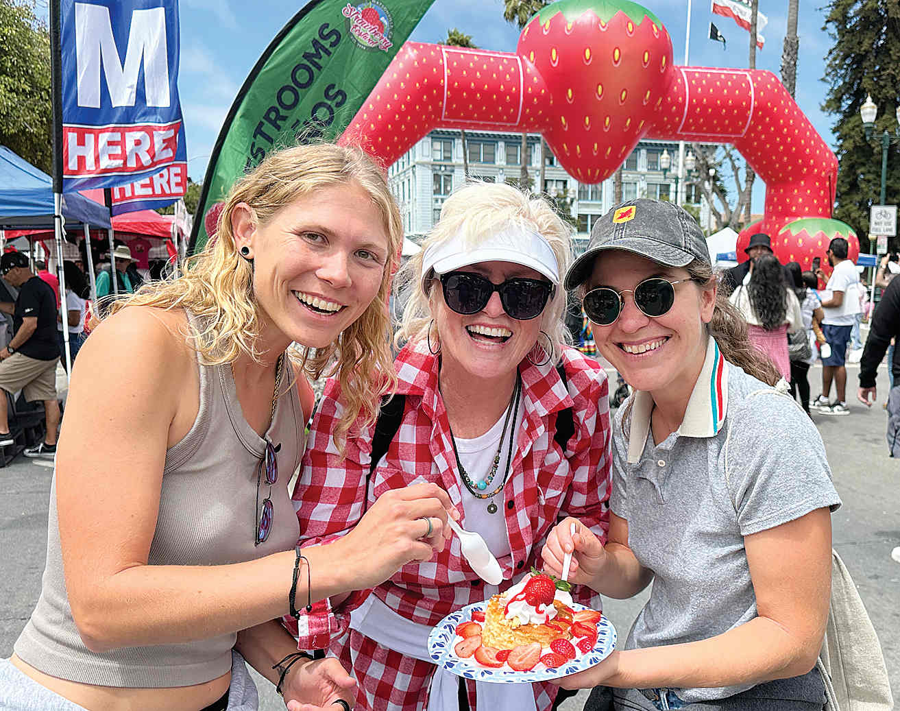 Kim Vestal drove from the Santa Cruz Mountains with her daughter, Hannah Bowers and friend Katie Cole to her hometown to get a taste of the Strawberry Festival.