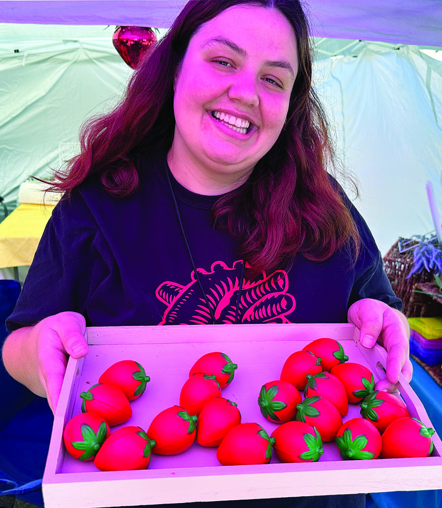 Tarmo Hannula/The Pajaronian Kenny the Clown spices up his act with the help of a bubble machine.Tarmo Hannula/The Pajaronian Monica Galvan of Arte del Corazon shows a tray of “Strawberry Stress Balls.Tarmo Hannula/The Pajaronian Katelyn Cotez (from left), Retty Reyes and Mary Nelle enjoy cold drinks in the Beer Garden at the festival.The Chicano All Stars perform of the main stage at the event Saturday. (Tarmo Hannula/The Pajaronian)A strawberry infused tamale was on the menu over the weekend. (Tarmo Hannula/The Pajaronian)Strawberry tacos were a popular draw. (Tarmo Hannula/The Pajaronian)This woman purchases a flat of strawberries to take home from the festival. (Tarmo Hannula/The Pajaronian)Thousands of people flocked to the festival Saturday. (Tarmo Hannula/The Pajaronian)Alma Y Tradicion Ballet Folklorico of Salinas treat the crowds to Mexican folk dance. (Tarmo Hannula/The Pajaronian)The kids are delighted by a wave of bubbles while visiting Kenny the Clown. (Tarmo Hannula/The Pajaronian )Tigran Bakchagyan picks up an order of strawberry enhances smoothies. (Tarmo Hannula/The Pajaronian)