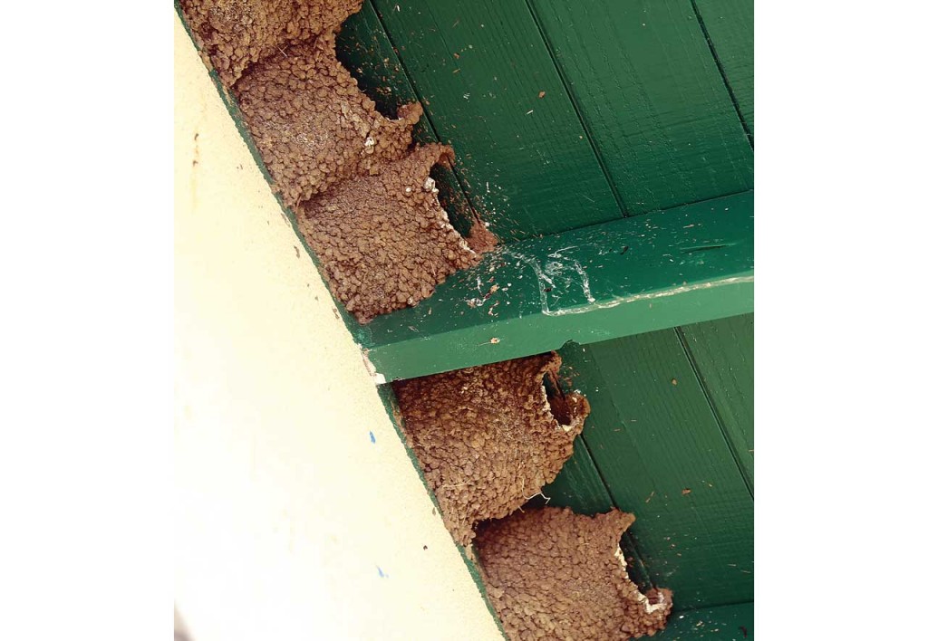 (Cliff swallow nests at Pajaro Valley High School line the eaves on numerous roofs. Photo by Tarmo Hannula/Pajaronian)