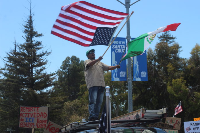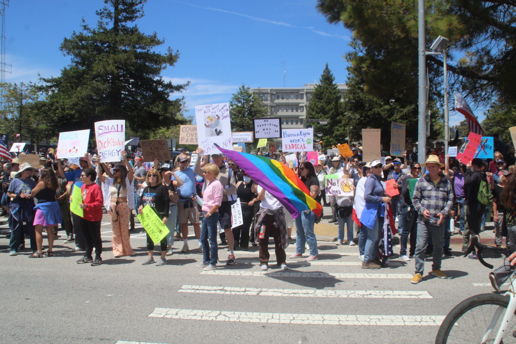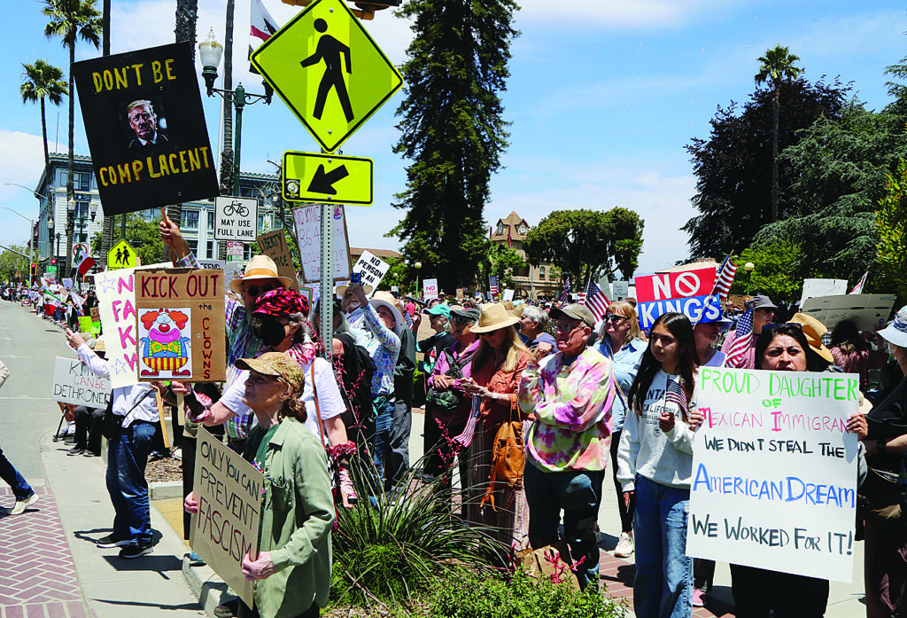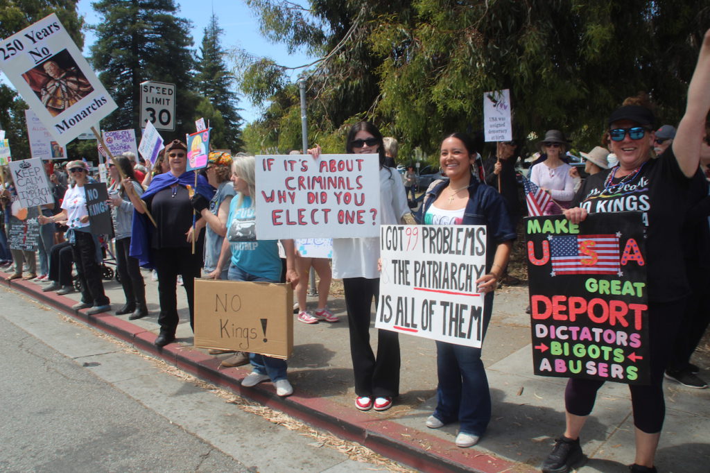 Thousands of people gathered at the Governmental Center in Santa Cruz and in City Plaza in Watsonville Saturday for No Kings Day.