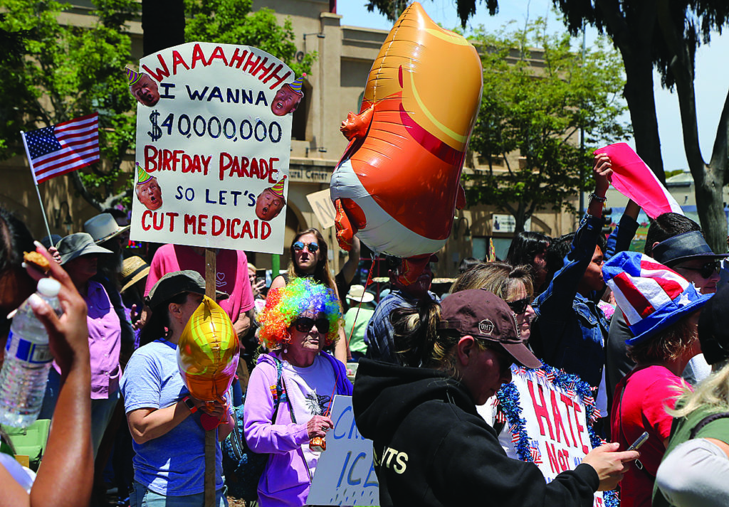 The first-of-its-kind event was held in 2,000 cities nationwide to protest President Donald Trump’s immigration policies, and as a counter-demonstration to the $45 million military parade he was holding in Washington D.C. to celebrate the 250th anniversary of the formation of the U.S. military, and his birthday.