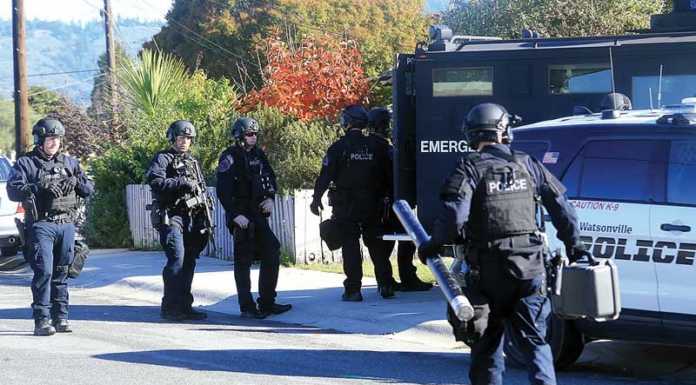 Police officers from Watsonville and Santa Cruz raided a residence on Clifford Avenue Friday morning during a search for stolen guns, Watsonville Police Sgt. Mish Radich said.