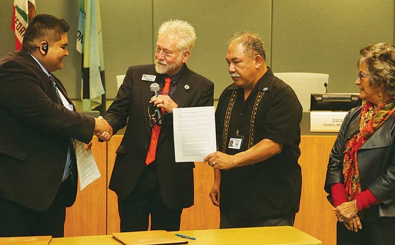 Tangancícuaro Mayor Arturo Hernández Vázquez and Watsonville Mayor Lowell Hurst both signed an agreement Friday in the City Council Chambers that states the two cities will share their cultures with each other in the coming years. Councilman Oscar Rios said city officials will travel to Tangancícuaro in the future to sign a similar document.